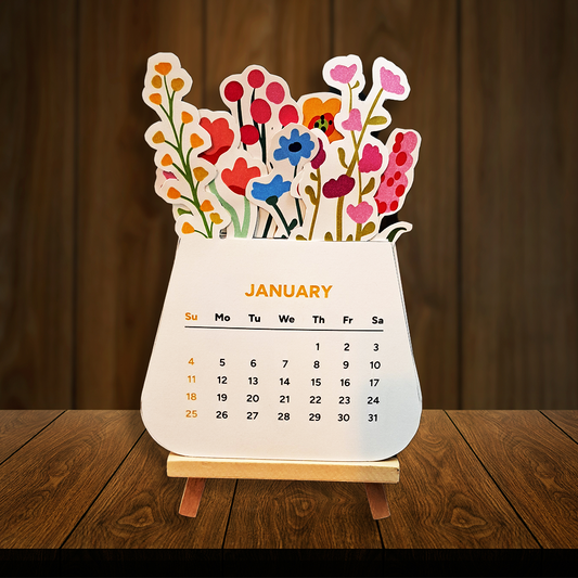 Colourful Floral New Year Desk Calendar – Customisable Corporate Gifting | Cheerful Table Calendar for 2025